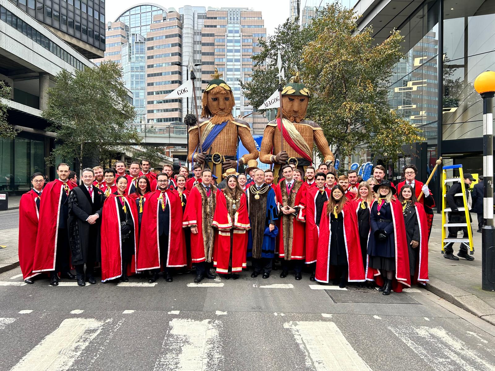 A particular highlight for our members is the Lord Mayor’s Show, held following the election of the new Lord Mayor. This spectacular parade winds through the streets of the City, celebrating the pageantry of the Livery Companies and the extraordinary diversity of organisations that call the City their home—from City-affiliated military units to schools, charities, and corporations. During the event, the Guild parades with the Basketmakers’ Company, serving as marshals for Gog and Magog, the legendary guardians of the City.